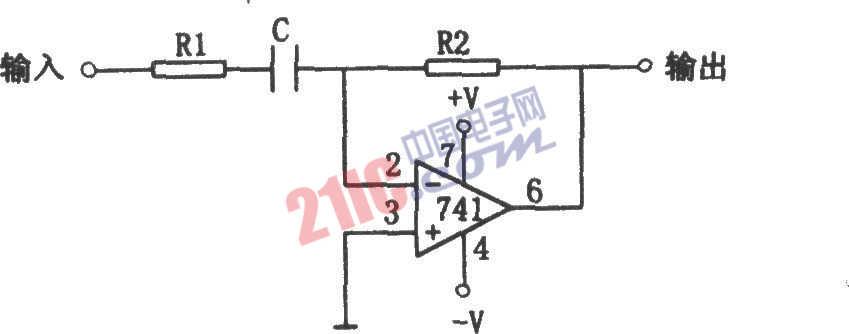 如圖所示為實(shí)用微分電路。該電路為由通用運(yùn)放構(gòu)成。當(dāng)微分器輸入一個(gè)三角波時(shí),其輸出為方波,而輸入信號(hào)頻率由電路中電阻R1、R2和電容C決定。本電路要求R1的值約為R2的十分之一,即: