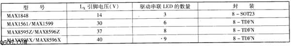 表 選擇適當(dāng)器件驅(qū)動所要求的串聯(lián)LED