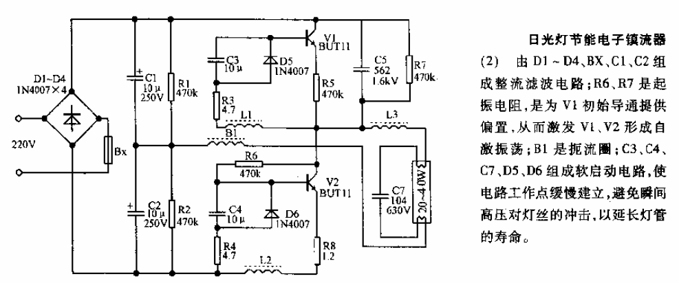 日光燈節(jié)能電子鎮(zhèn)流器電路2