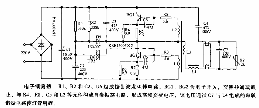 電子鎮(zhèn)流器電路圖