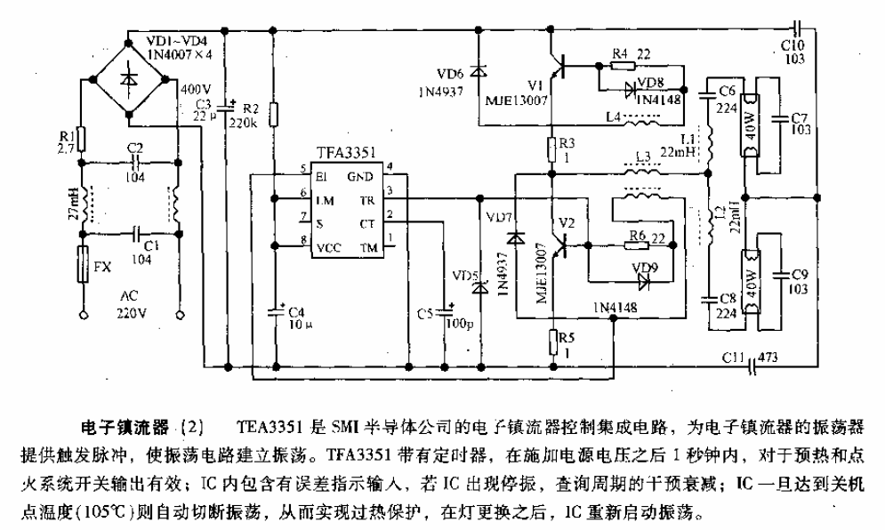 串聯(lián)式電子鎮(zhèn)流器電路圖
