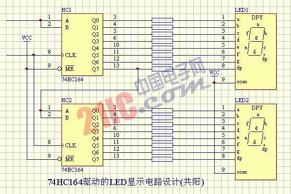 LED-74HC164驅(qū)動(dòng)的LED顯示電路設(shè)計(jì)(共陽(yáng))