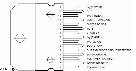 TDA7293是15腳封裝。TDA7293各腳的作用如下:1腳是待機(jī)地;2腳是反相輸人端;3腳是正相輸人端;4腳是地;5腳是短路電流檢測(cè)端,通常作為懸空;6腳是自舉端;7腳是正電源輸入端(信號(hào)處理部分);8腳是負(fù)電源輸入端(信號(hào)處理部分);9腳是待機(jī)端;10腳是靜音端;11是緩沖驅(qū)動(dòng)輸出端(橋接時(shí)使用);12腳是反饋輸人端;13腳是正電源輸人端(功率輸出級(jí)部分);14腳是功率輸出端;15腳是負(fù)電源輸入端(功率輸出級(jí)部分)。