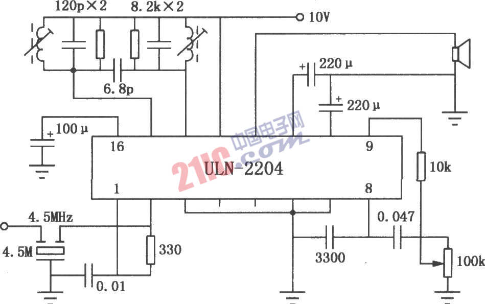 ULN2204A FM/AM收音機(jī)電路