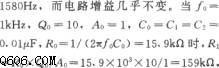 下圖所示是一用單只運放組成的單峰特性濾波電路。該電路用一只運放及少許元件構成濾波器,可以獲得與LC元件構成的具有同樣特性的濾波器電路,在不改變電路增益的情況下,可方便調整諧振頻率。本電路用電位器PR1來調整諧振頻率。PR1值從最小調到最大時,諧振頻率調整范圍為
