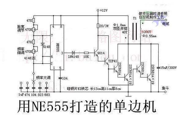 NE555打造的單邊機(jī)電魚機(jī)電路圖