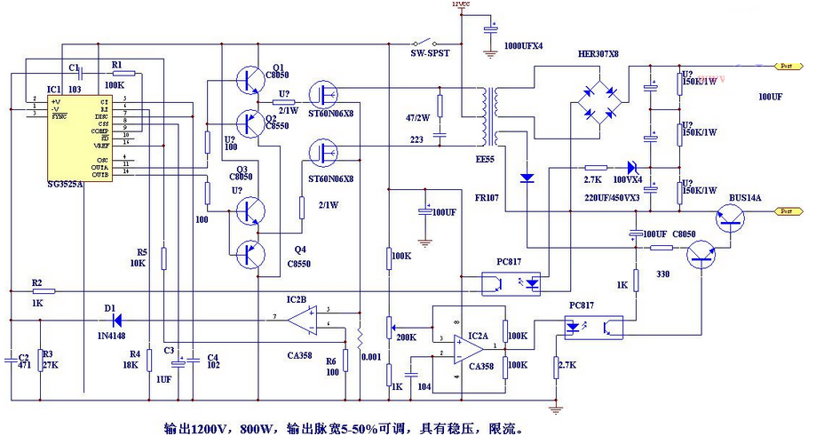 輸出1200伏800W電魚(yú)機(jī)電路圖