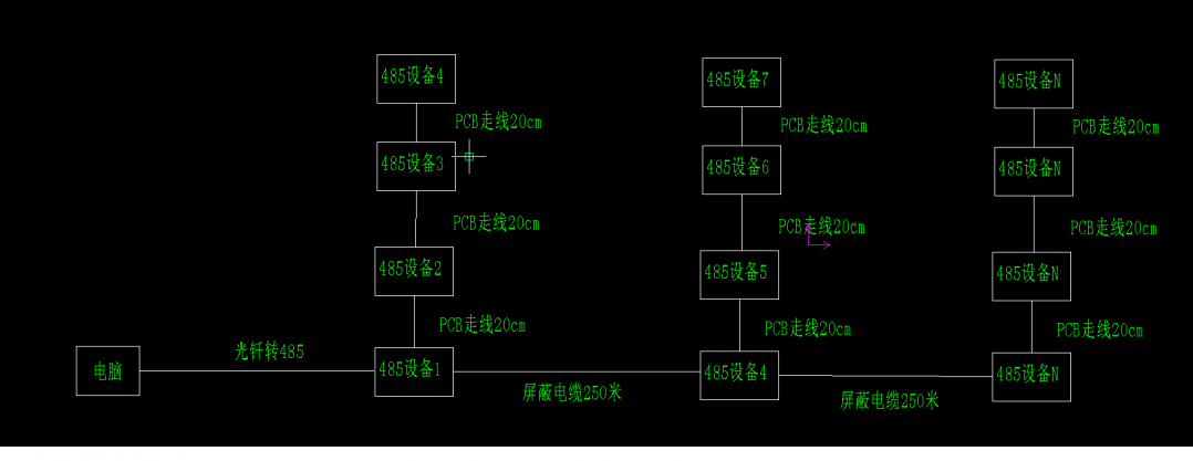 這種485組網(wǎng)方式可行嗎? 還算手拉手模式? 最后匹配電阻接在哪?
