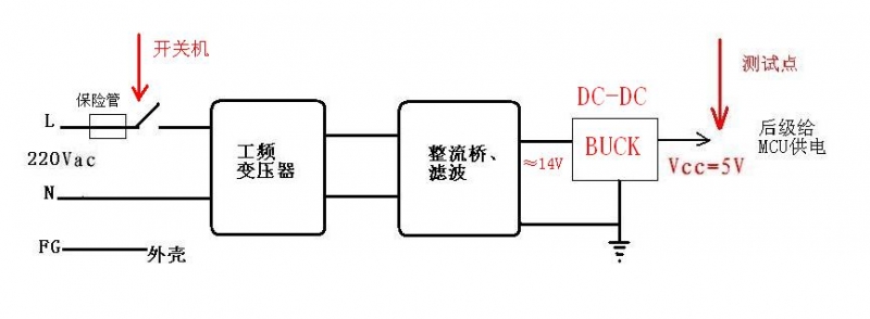 下圖是我機器一款電源的問題(工頻的,不是開關電源AC-DC:lol),就是開關機時有較大的沖擊電壓。