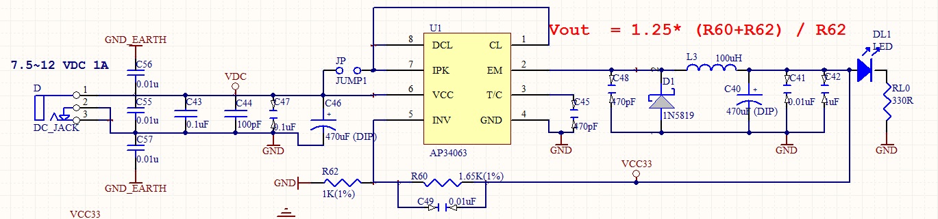 首先電源轉(zhuǎn)換是必須的。一是可直接使用的電源適配器較少,二是為了板級(jí)電源的穩(wěn)定。選用物美價(jià)廉的MC36063,加上外圍元件,成本在一元到兩元之間。