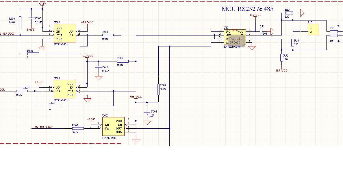 用stm32單片機(jī)實(shí)現(xiàn)這個(gè)485通訊。我自己買了個(gè)RS232/485轉(zhuǎn)換器、USB轉(zhuǎn)232。然后pc通過(guò)USB口到轉(zhuǎn)換器,最后轉(zhuǎn)成485接口。現(xiàn)在單片機(jī)發(fā)出來(lái)的數(shù)據(jù),pc這一段都能收到。但是通過(guò)pc發(fā)的話,單片機(jī)收不到數(shù)據(jù),不報(bào)中斷,單片機(jī)這端配置沒(méi)問(wèn)題的。請(qǐng)幫忙看看什么原因呢?好幾天了沒(méi)頭緒啊。電路見(jiàn)下。光耦用的HCPL-0601,那個(gè)485芯片用的帶保護(hù)的75lbc184.
