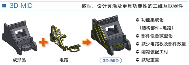 基于3D激光的3D-MID技術(shù)可廣泛運用于移動通訊,手持互聯(lián)網(wǎng)設(shè)備,精密儀器,醫(yī)療設(shè)備,汽車、航空等眾多領(lǐng)域,能夠有效減小產(chǎn)品體積,提高可靠性,為產(chǎn)品創(chuàng)新提供有力支持。3D-MID技術(shù)最初提出在80年代初期,直至2005年之后才開始大規(guī)模應(yīng)用,國內(nèi)包括泛友科技有限公司,同拓光電有限公司等都成功研發(fā)具備自主知識產(chǎn)權(quán)的3D-MID技術(shù)。
