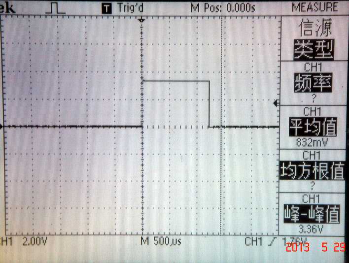 下面波形圖是淘寶上買的舵機(jī)測(cè)試儀的輸出波形,用I/O口模擬pwm脈沖信號(hào),直接連上就能玩了,舵機(jī)里面有接收驅(qū)動(dòng)芯片. 用示波器看I/O口波形,若掛上負(fù)載后波形沒有減幅,則可以直通控制,若波形變矮,變形了,則pwm輸出加級(jí)放大或光耦較妥.