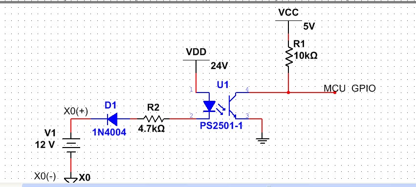 我的問題是:這樣設計光耦的輸入端有什么不妥當?shù)牡胤讲唬?br/>總感覺VDD和V1在一個電路回路(假設這個電路回路存在)中有點怪怪的。