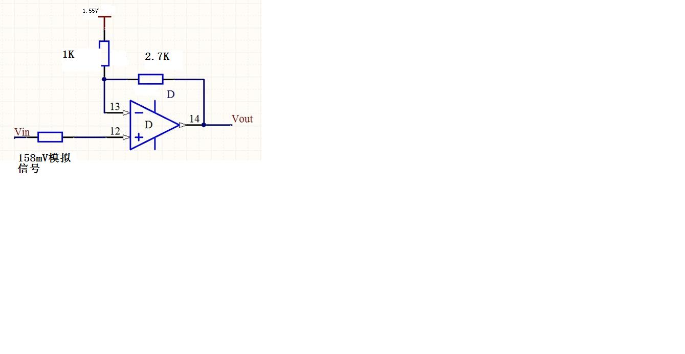 運(yùn)放反相輸入端(13腳)是158mV,根據(jù)1k電阻上端1.55V和2.7k電阻右端接輸出,用電阻分壓的方法即可計(jì)算。