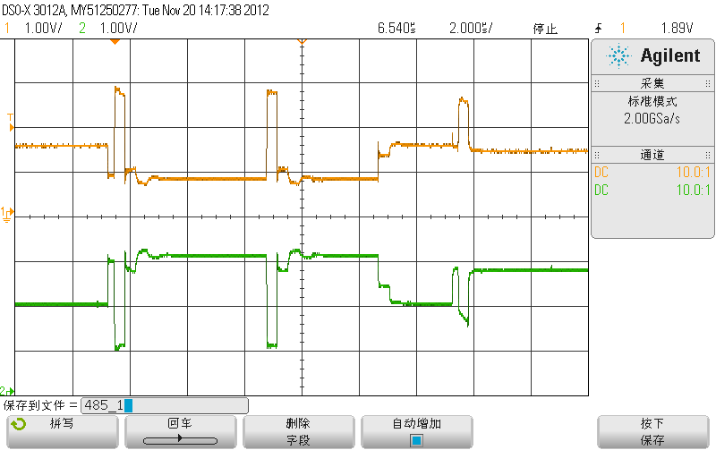 2.如上圖所示,485差分信號差值不同,高電平為發(fā)送,低電平為接收,這種波形是否正常?