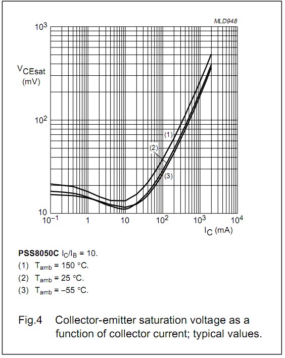 從這個圖看,Ic=1ma的時候,Vce低于20mv呢,很低的一個數(shù)值了,也就是說,在Ic=1ma的時候,Vce結的飽和電壓可以低至20mv,可以這樣理解嗎