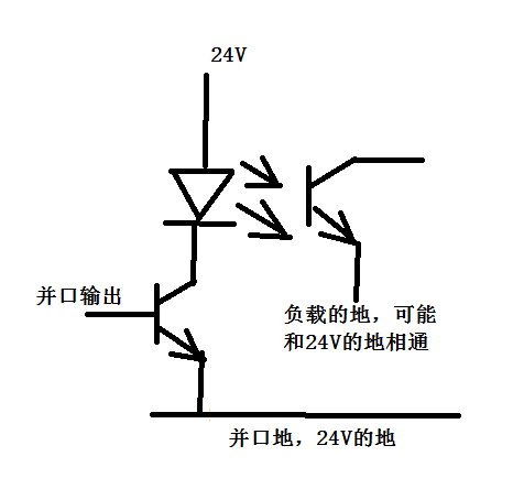 但是,由于負(fù)載供電也是用的圖中這個(gè)24V,所以光耦里面的地可能和24V的地是聯(lián)通的。不知道是不是有關(guān)系。