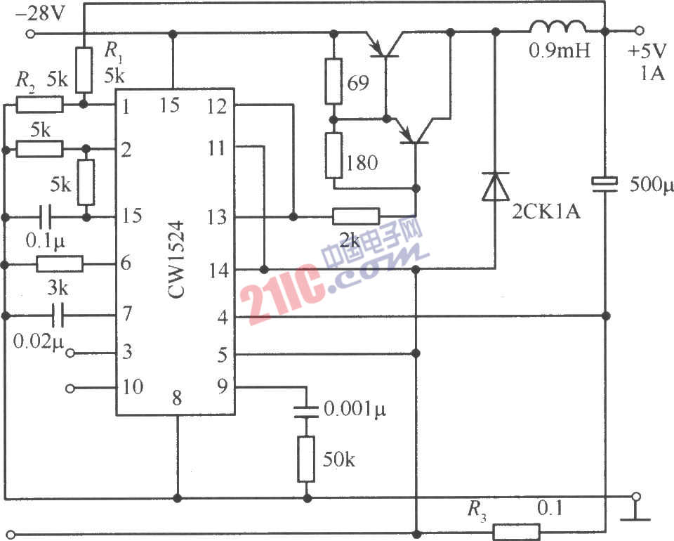 由CW1524組成的半橋式開關(guān)穩(wěn)壓電源電路
