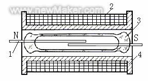 1-舌** 2-線圈 3-玻璃管 4-骨架 當(dāng)線圈通電后,管中兩占**的自由端分別被磁化成N極和S極而相互吸引,因而接通被控電路。線圈斷電后,干 簧 在本身的彈力作用下分開,將線路切斷。