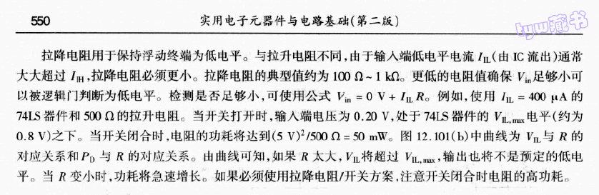 ? ? 要保證上拉電阻明顯小于負(fù)載的阻抗,以使高電平時(shí)輸出有效。 例如:負(fù)載阻抗是10K,供電電壓是5V,如果要求高電平不小于4.5V,那么,上拉電阻最大值 R大:(5-4.5)=10:5 R大=1K 也就是最大值1k,(如果超過(guò)了1k,輸出的高電平就小于4.5V了)