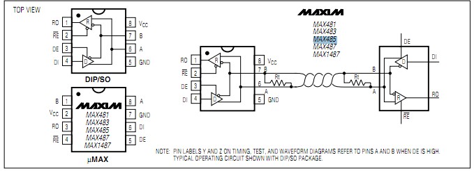 要長距離、多節(jié)點(diǎn)傳輸,MAX485的控制腳一定要用起來。