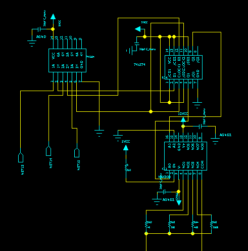 左邊為74LS04 右上為74LS74 右下為MAX308
