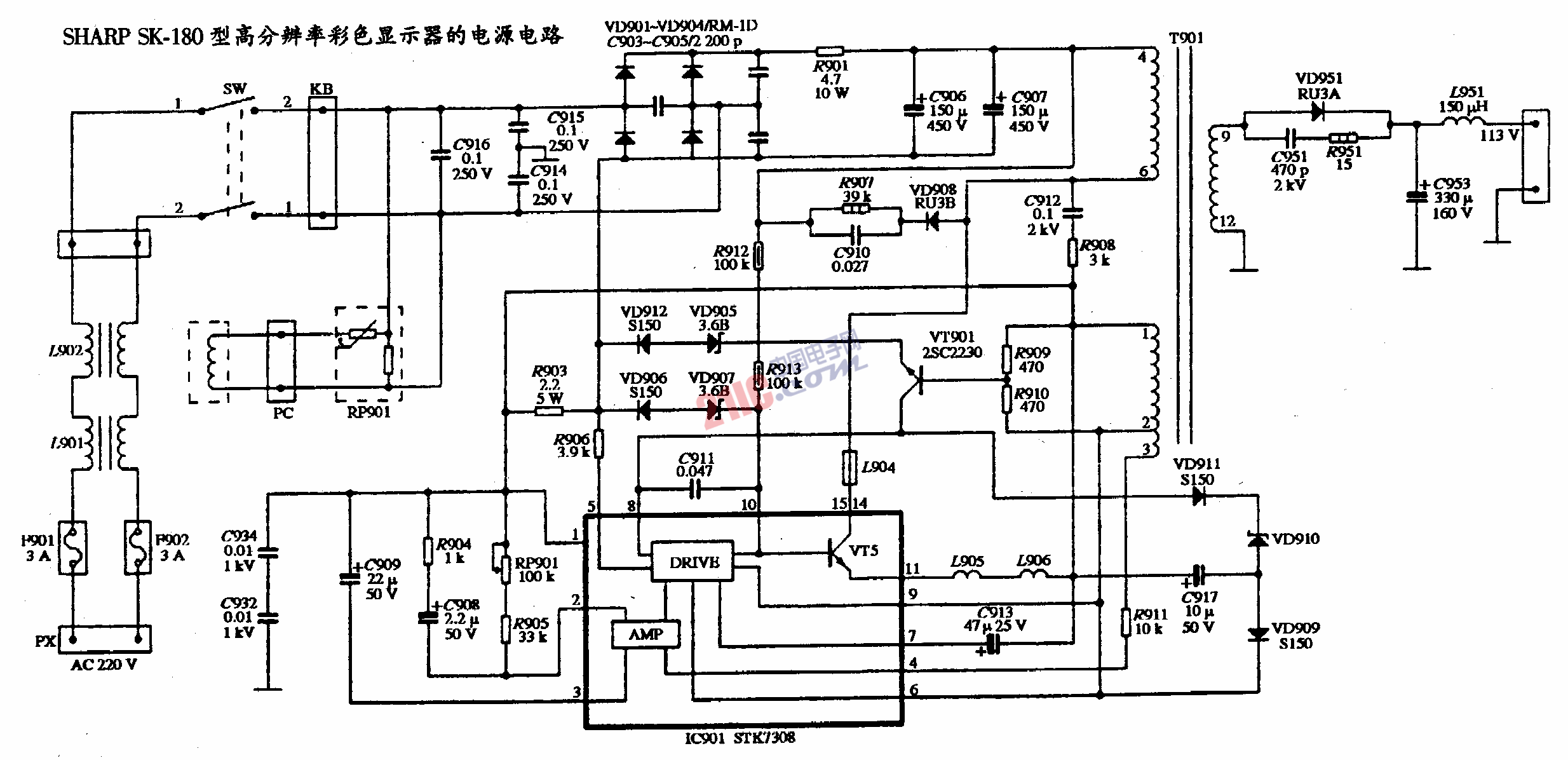 SHARP SK-180型高分辨率彩色顯示器的電源電路圖