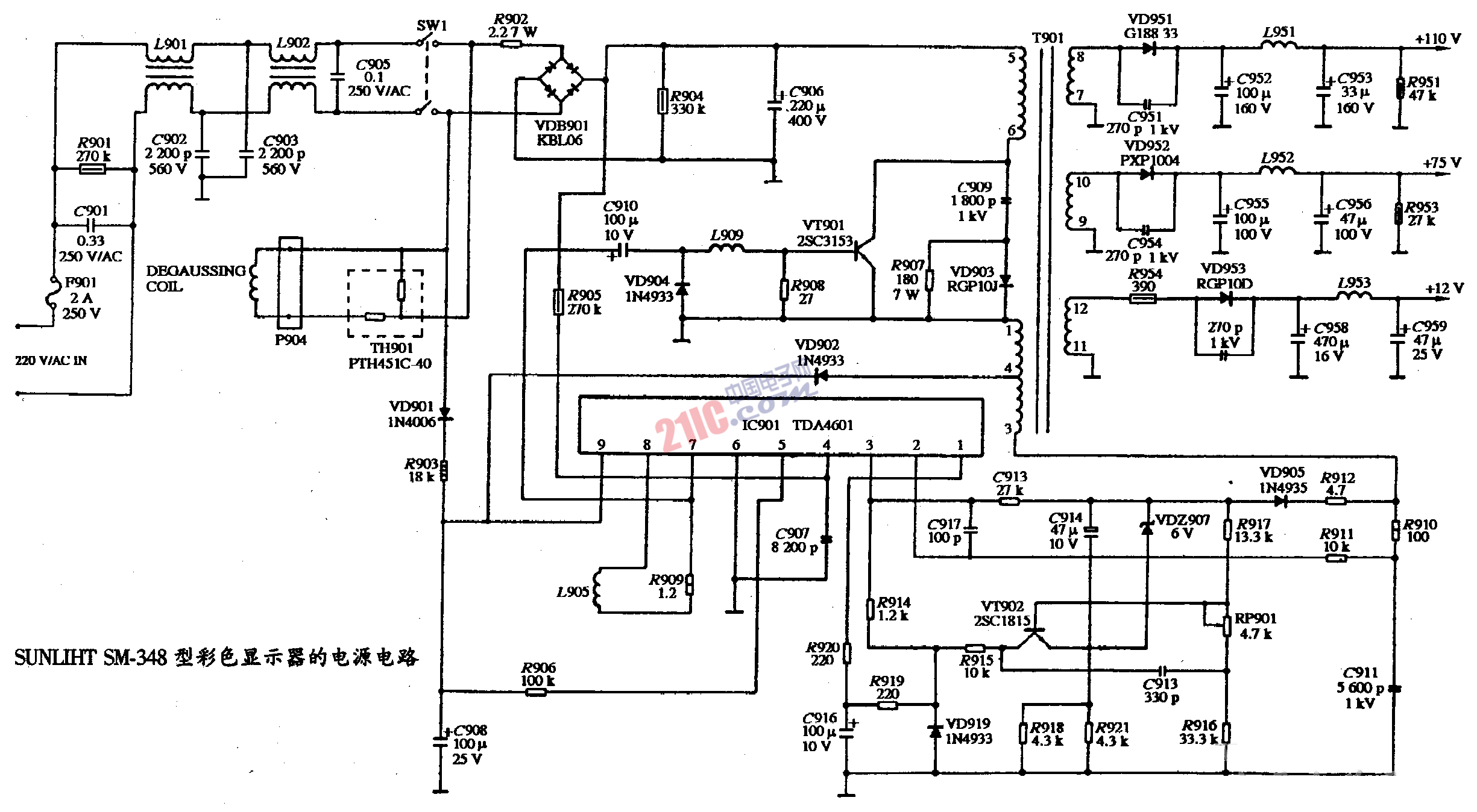 SUNLIHT SM-348型彩色顯示器的電源電路圖