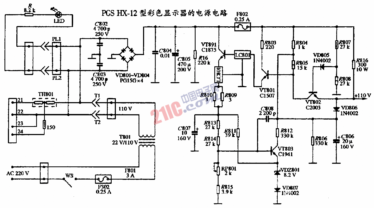 聯(lián)想LX-PL4C2型彩色顯示器開關(guān)電源電路