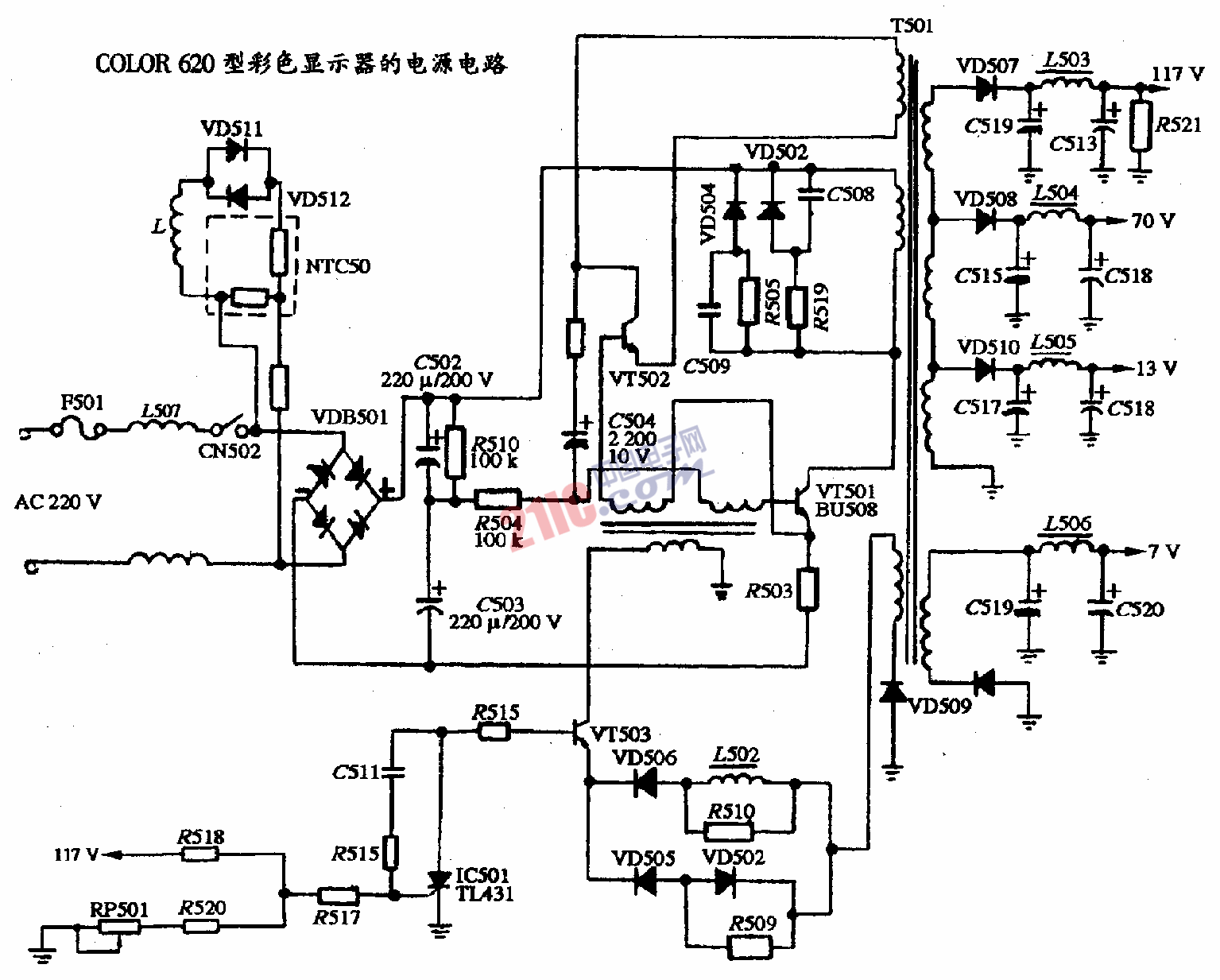 聯(lián)想LX-PL4C2型彩色顯示器開關(guān)電源電路