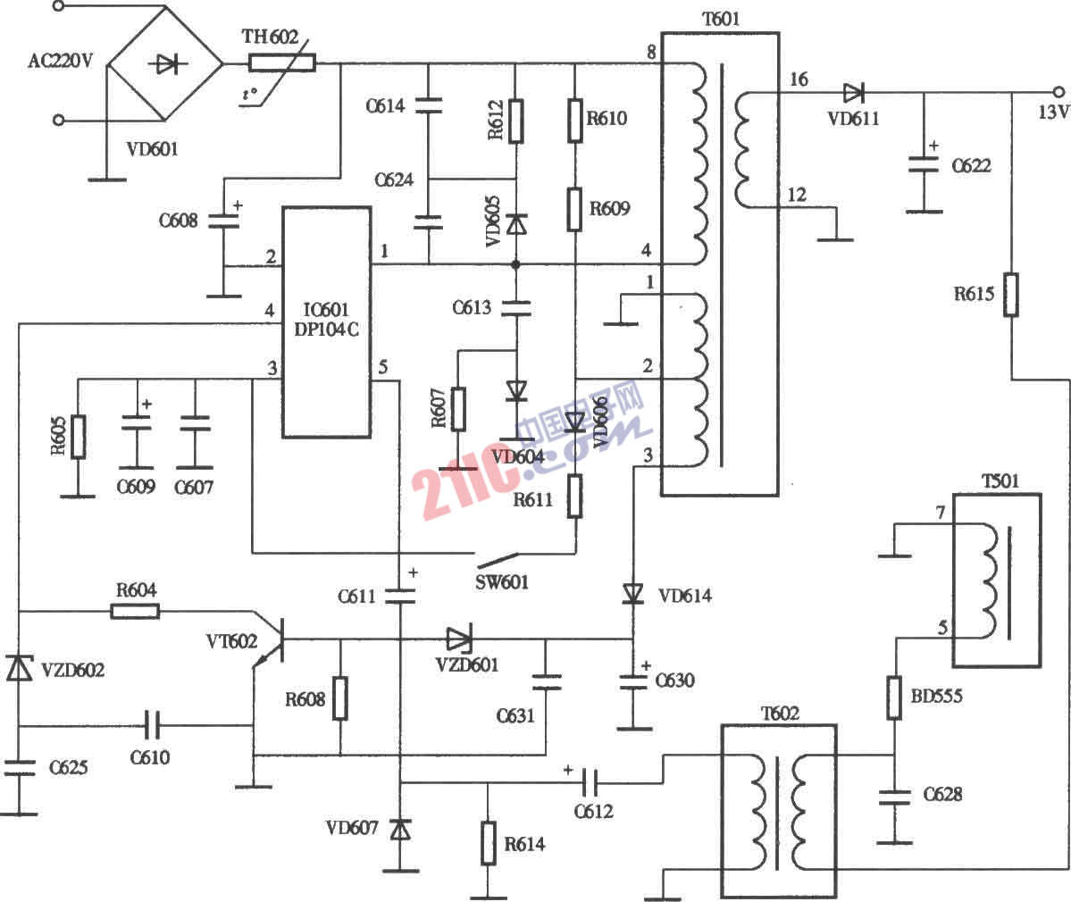 三星SAMSANG5508/7508型彩顯開關(guān)電源(DPl04P) 電路