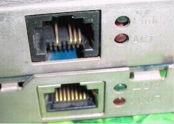 在網(wǎng)卡后側(cè)RJ45接口一邊有兩個指示燈。它們分別為連接狀態(tài)指示燈和信號傳輸指示燈,其中正常狀態(tài)下連接狀態(tài)指示燈呈綠色并且長亮,信號指示燈呈紅色,正常應(yīng)該不停地閃爍。