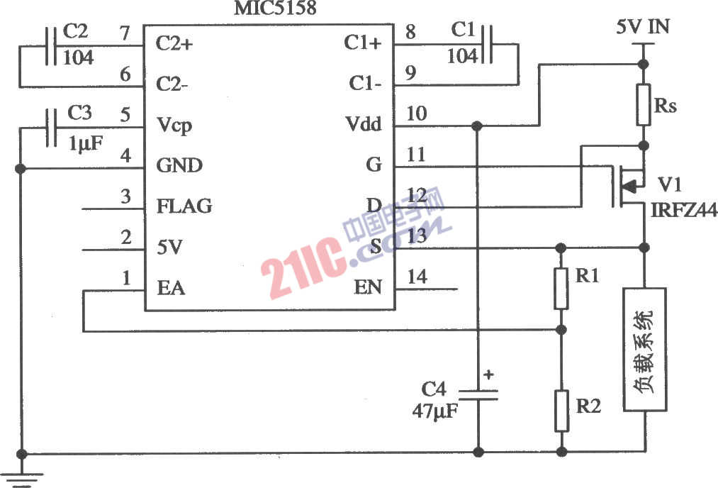 由MIC5158作為控制器的簡(jiǎn)單恒流源電路如圖所示。該電路的輸出電流主要取決于MIC5158內(nèi)部的35 mV基準(zhǔn)電壓源與外加的限流電阻Rs,其關(guān)系式為:
