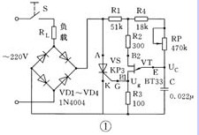 怎樣才能做到同步呢?大家再看調(diào)壓器的電路圖(圖1)。請(qǐng)注意,在這里單結(jié)晶體管張弛振蕩器的電源是取自橋式整流電路輸出的全波脈沖直流電壓。在晶閘管沒有導(dǎo)通時(shí),張弛振蕩器的電容器C被電源充電,UC按指數(shù)規(guī)律上升到峰點(diǎn)電壓UP時(shí),單結(jié)晶體管VT導(dǎo)通,在VS導(dǎo)通期間,負(fù)載RL上有交流電壓和電流,與此同時(shí),導(dǎo)通的VS兩端電壓降很小,迫使張弛振蕩器停止工作。當(dāng)交流電壓過零瞬間,晶閘管VS被迫關(guān)斷,張弛振蕩器得電,又開始給電容器C充電,重復(fù)以上過程。這樣,每次交流電壓過零后,張弛振蕩器發(fā)出第一個(gè)觸發(fā)脈沖的時(shí)刻都相同,這個(gè)時(shí)刻取決于RP的阻值和C的電容量。調(diào)節(jié)RP的阻值,就可以改變電容器C的充電時(shí)間,也就改變了第一個(gè)Ug發(fā)出的時(shí)刻,相應(yīng)地改變了晶閘管的控制角,使負(fù)載RL上輸出電壓的平均值發(fā)生變化,達(dá)到調(diào)壓的目的。