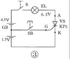 普通晶閘管的三個(gè)電極可以用萬用表歐姆擋R×100擋位來測。大家知道,晶閘管G、K之間是一個(gè)PN結(jié)〔圖2(a)〕,相當(dāng)于一個(gè)二極管,G為正極、K為負(fù)極,所以,按照測試二極管的方法,找出三個(gè)極中的兩個(gè)極,測它的正、反向電阻,電阻小時(shí),萬用表黑表筆接的是控制極G,紅表筆接的是陰極K,剩下的一個(gè)就是陽極A了。測試晶閘管的好壞,可以用剛才演示用的示教板電路(圖3)。接通電源開關(guān)S,按一下按鈕開關(guān)SB,燈泡發(fā)光就是好的,不發(fā)光就是壞的