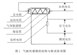 氣敏傳感器的結(jié)構(gòu)與測(cè)試原理如圖1所示。