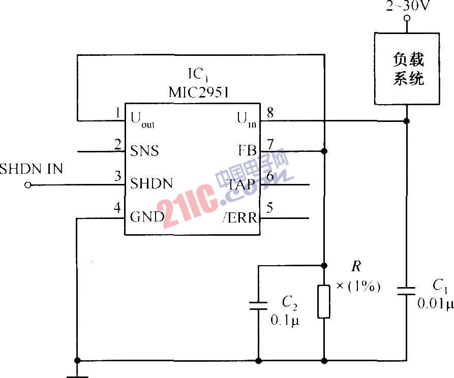 如圖所示電路是采用MIC2951構(gòu)成的低漂移恒流源電路,其恒流源的輸出電流值為:IL=1.23V/R,為了使MIC2951的輸出電流不得超出150mA,R的精度要求為l%。