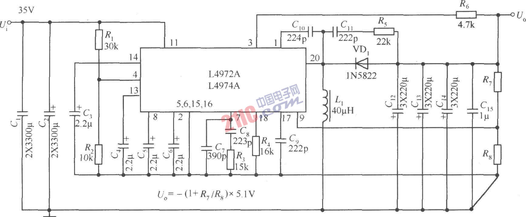 由LTC1628-SYNC構(gòu)成的輸出為5V、5A,3.3V、5A雙路直流穩(wěn)壓電源電路