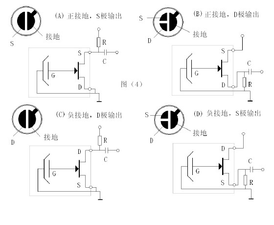 機內型電容話筒有四種連接方式,如圖(4)所示。