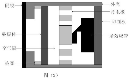 由于實際電容器的電容量很小,輸出的電信號極為微弱,輸出阻抗極高,可達數百兆歐以上。因此,它不能直接與放大電路相連接,必須連接阻抗變換器。通常用一個專用的場效應管和一個二極管復合組成阻抗變換器。內部電氣原理如圖(3)。