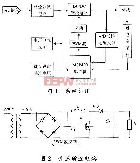 MSP430系列單片機(jī)是美國TI公司生產(chǎn)的新一代16位單片機(jī),是一種超低功耗的混合信號處理器(MixedSignal Processor),它具有低電壓、超低功耗、強(qiáng)大的處理能力、系統(tǒng)工作穩(wěn)定、豐富的片內(nèi)外設(shè)、方便開發(fā)等優(yōu)點,具有很高的性價比,在工程控制等領(lǐng)域有著極其廣泛的應(yīng)用范圍。開關(guān)Boost穩(wěn)壓電源利用開關(guān)器件控制、無源磁性元件及電容元件的能量存儲特性,從輸入電壓源獲取分離的能量,暫時把能量以磁場的形式存儲在電感器中,或以電場的形式存儲在電容器中,然后將能量轉(zhuǎn)換到負(fù)載。對DC—DC主回路采用Boost升壓斬波電路。