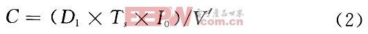 式(2)中:C為電容的值;D1為占空比;TS為MOSFET的開關(guān)周期;I0為負(fù)載電流;V’為輸出電壓紋波。