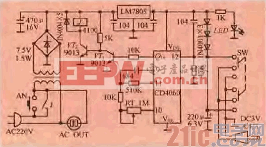 一款定時(shí)關(guān)斷的交流電源適配器電路