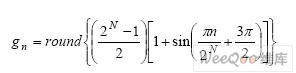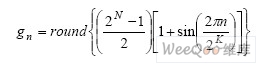 第一步需要一個輸入序列,用來代表一個以等距時間間隔采樣的理想正弦波周期。目標(biāo)是重構(gòu)DAC傳遞函數(shù),因此從0到2N–1的每個DAC碼必須在輸入信號中至少出現(xiàn)一次。輸入序列需要2N以上的采樣點才能以等距間隔使用每個DAC碼,實際上至少需要2N+3個采樣才能保證每個碼都出現(xiàn)。下式可產(chǎn)生2K DAC碼的理想正弦序列(K ≥ N+3)。函數(shù)round{x}將x舍入為最近的整數(shù)。