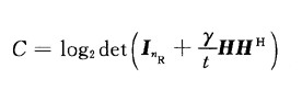 式中,γ=P/σ2為發(fā)送端的總功率P與每個接收天線的噪聲方差的比值,也就是每根接收天線端的平均信噪比。對于nR×nT矩陣H,秩的最大值為m=min(nR,nT),也就是說,至多有叨個非零特征值。HHH是nR×nR階矩陣。