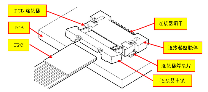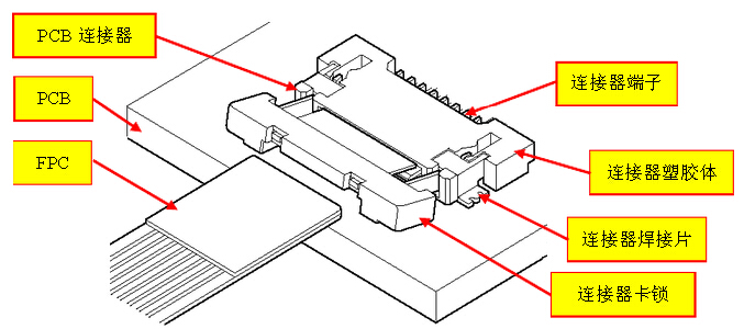 ??? FPC連接器用于連接印制電路板(PCB)和柔性印制電路板(FPC),使之實(shí)現(xiàn)機(jī)械上和電氣上的連接。其特點(diǎn)是一端與PCB焊接相連接(多采用SMT焊接),另一端與FPC對插,且FPC連接器上設(shè)計(jì)有卡鎖裝置使FPC和FPC連接器鎖緊,保持一定的接觸可靠性。故連接器的塑膠體和端子以及卡鎖零件之間有嚴(yán)格的配合要求。如下圖所示,是FPC連接器的產(chǎn)品示意圖:
