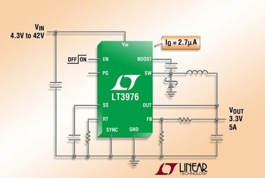 ·寬輸入范圍:在 4.3V 至 42V (LT3975) 范圍工作