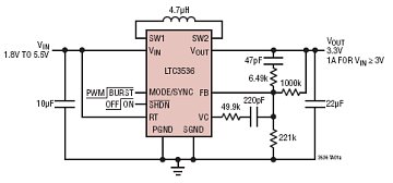 圖1圖2:同步降壓/升壓型轉換器LTC3536應用