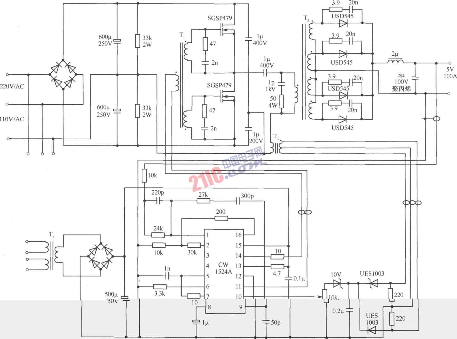 用CW1525A制作的半橋變換式開(kāi)關(guān)穩(wěn)壓電源電路